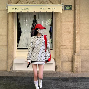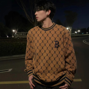 韩版MLB圆领卫衣老花满印男女情侣同款休闲宽松秋冬长袖套NY洋基