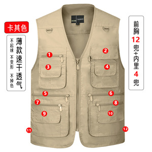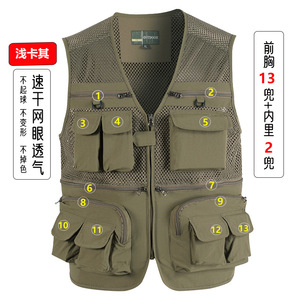 カーキ【速乾薄型スタイル、12スタイル、計16ポケット】