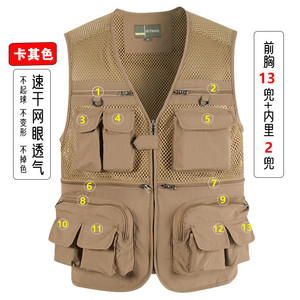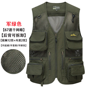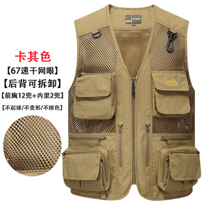 メッシュベストメンズ夏屋外速乾性薄型中空ガーゼマルチポケット写真撮影ベストプラスファット