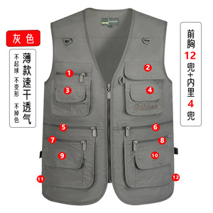 グレー【速乾薄型スタイル、12スタイル、計16ポケット】