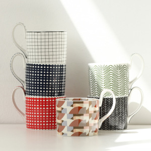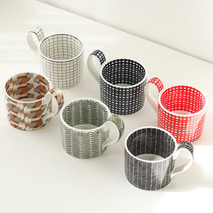古典的で洗練された幾何学模様の高柄大容量セラミックマグカップミルクカップ朝食カップは企業ロゴを注文できます