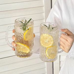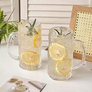 柄の取っ手付きガラスコップins高颜値家庭用ジュース透明グラス耐高温ガラスコップ