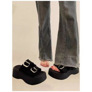 女性用厚底プラットフォームサンダル 2025 新しいヨーロッパスタイルのトレンディなデニムスリッパスポーツローマ女性用サンダル