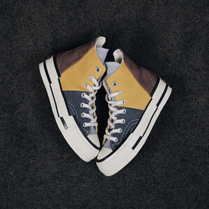 カラーブロック ブルー イエロー ブラウン