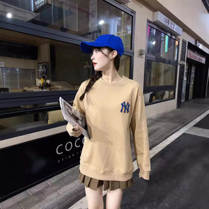 MLB圆领卫衣男女秋季新款情侣刺绣老花大logo宽松纯棉套头衫NY洋
