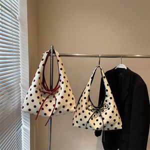 シンプルな水玉模様のリボン脇の下バッグ女性のための 2025 夏の新しいファッション高価値通勤ショルダーハンドバッグ