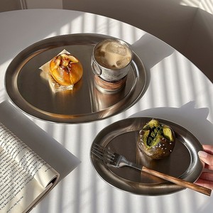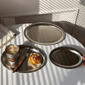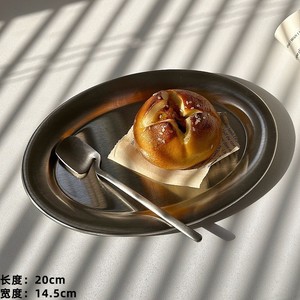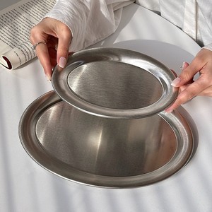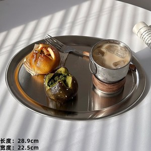 シンプルなイントレイステンレス鋼オーバルディナープレートコーヒーショップパンプレートデザートスナックプレートコーヒーカップトレイ