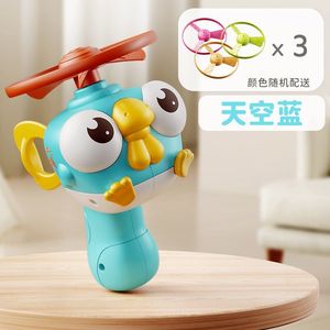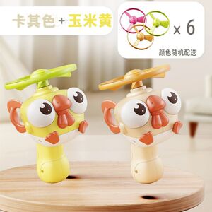 户外运动家用休闲用儿童竹蜻蜓玩具手拉飞碟飞盘手持弹发射枪旋转