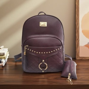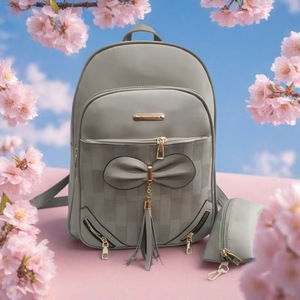 跨境批发双肩包女新款2025通勤pu皮背包轻便女生书包两件套