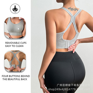 クロスボーダー大きいサイズスポーツ下着レディース防振垂れ下がり防止クロス美背ブラジャー一体ランニングヨガスポーツブラジャー