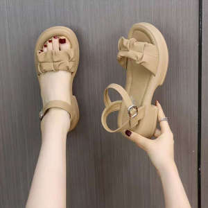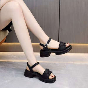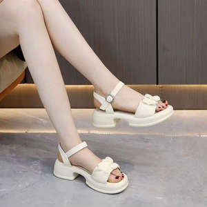 小柄な背が高くなって厚い底のサンダルの女性の夏の外は2025年の新型のアンドロメダ風のカジュアルな百合の粗くてビーチの靴を着ます。