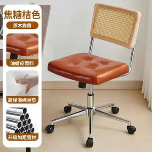 电脑椅家用藤编复古办公椅书房卧室学习书桌椅子靠背餐椅升降转椅