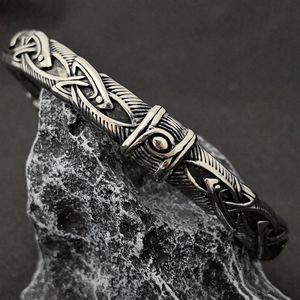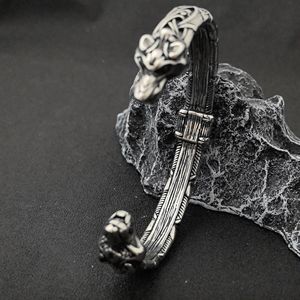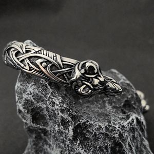 北欧复古不锈钢铸造男士双狼头开口手镯霸气维京眼睛手环批发配饰