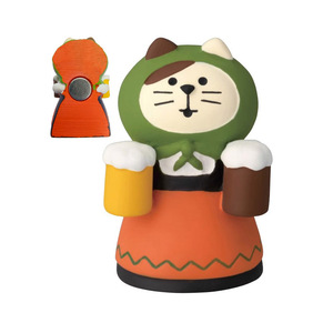 冷蔵庫用マグネット グリーンキャット カップを上げて