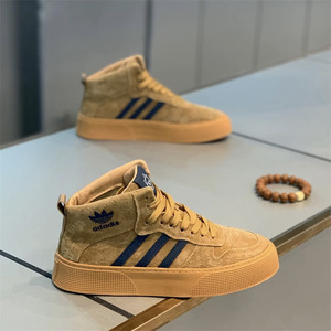 Kuaishouと同じスタイルの春のレースアップ多用途スリーストライプハイトップシューズ、快適でスポーティーなトレンディなメンズシューズ、革張りの通気性のあるトレンディなシューズ