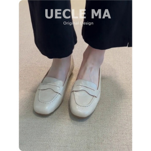 牛革 ~ 本革の手作り靴の平底の靴の女性は角頭の小さい革靴のフランスの通勤の浅い口の楽福の靴を合わせます。