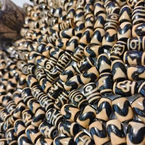 メーカー卸売 11 × 13 × 18 ミリメートル天珠ビーズブレスレットネックレス多用途手作りフラット歯黄色パッティングオイル