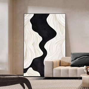 黒と白の抽象的なリビングルームの装飾画のモダンなシンプルなソファの背景の大幅な壁画のリビングルームの高級感のある床の掛け絵