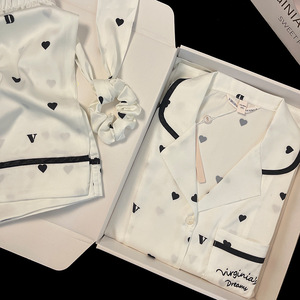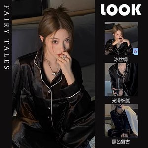 2023新型高級感春秋タイプのパジャマ女性秋の長袖の薄いタイプの女性のシルクの部屋の服の2つのセット
