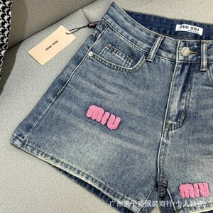mm25 夏新作韓国文字ロゴタオル刺繍デニムショートパンツ