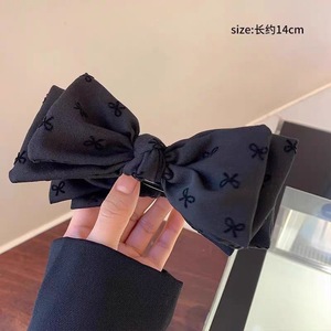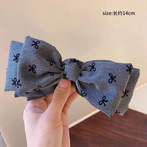 レトロな二重層大きなリボンクリップ小さな蝶プリントヘアクリップハイポニーテールサメクリップボールヘアクリップ