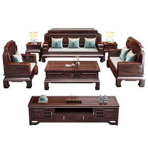 新しい中国風の全無垢材ウッディゴールドウッドソファ組み合わせリビングルームヴィラ冬と夏の両用モダンな大小の家具