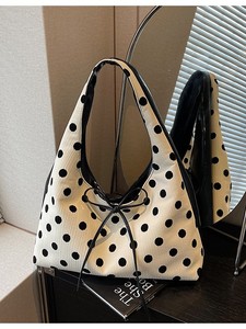 クロスボーダー水玉キャンバスバッグレディース2025新作トートバッグ大容量ポータブル野菜バスケットバッグ通勤脇バッグ