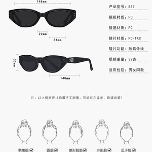 GM 同じフレームのレトロなキャットアイ サングラス、日焼け止めと UV 保護、小さなフレームのサングラス、ヨーロッパとアメリカのストリート撮影のホットガール サングラス