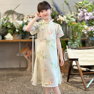 女の子の新しい中国風のチャイナドレス、中国風の改良されたチャイナドレスロングスカート、女性の夏の新しいレトロな気質プリントドレス