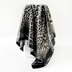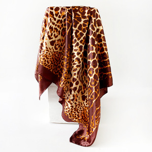 ヒョウ柄のプリントのシルクの女性の新型の中東のスカーフの欧米の90cmのショールの越境のシミュレーションのシルクの布の卸売り