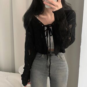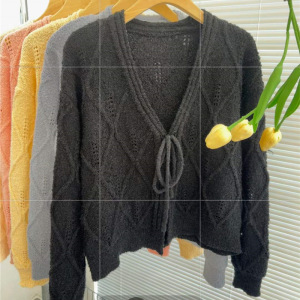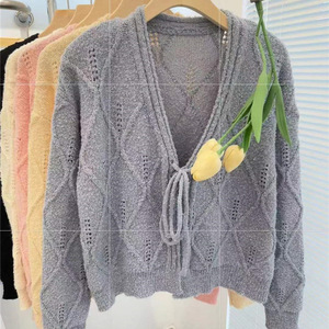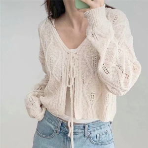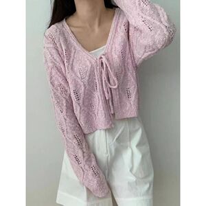 韓国の優しいスタイルの柔らかくワックスのような中空かぎ針編み V ネック カーディガン女性用 2025 夏の新しいスタイルの女性用ニット セーター トップ