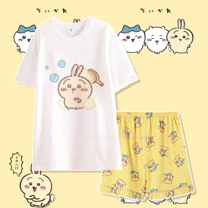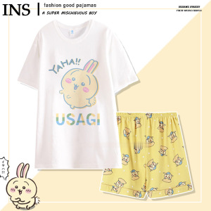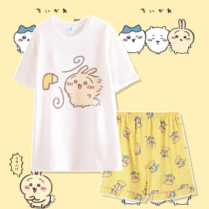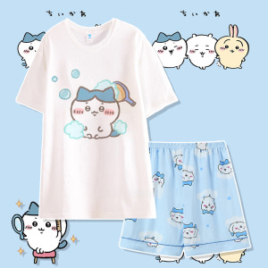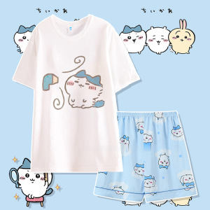ちいかわパジャマ夏綿ラウンドネック半袖ズボンルーズ漫画ちいかわホーム服