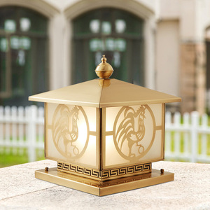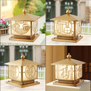 全銅製の新しい中国風のコラムヘッドランプ、電気接続付きガーデンランプ、防水屋外ヴィラドアポスト、テラス壁ポストランプ
