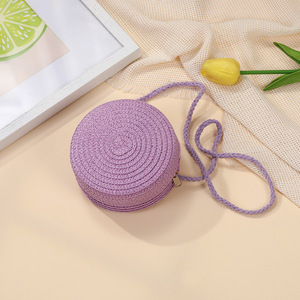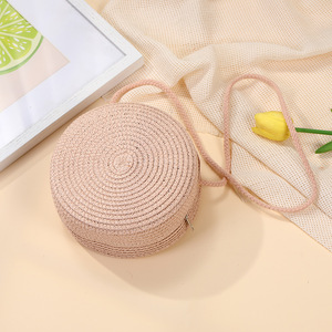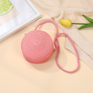 夏の草バッグ編みバッグ海辺休暇2025新型子供かわいいビーチ草バッグ斜め掛け小銭入れ