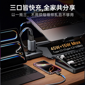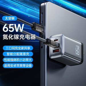 65Wハイパワー窒化ガリウム急速充電PD三口充電器はアップル華為安卓タブレット充電ヘッドに適している