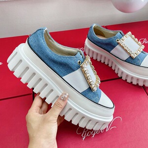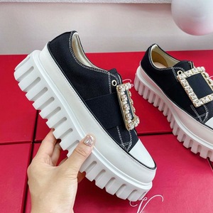 2025 初夏 rv 新しいラインストーンスクエアバックルローファー女性のラウンドヘッドギア厚底ファッションスリッポンキャンバスシューズ女性