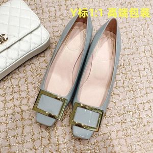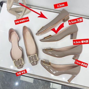 女性用高バージョン RV スクエアバックルハイヒールシューズ 2025 春の新作スクエアトゥメタルバックル羊漆塗装レザーシングルシューズミッドヒール婦人靴