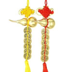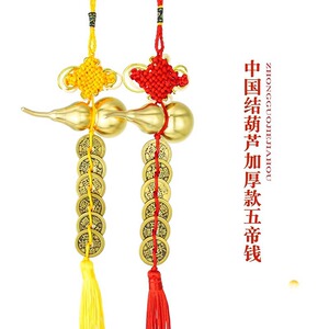 純真鍮の厚みのある五帝のお金のドアツードア開口部の銅ひょうたんペンダント、厚みのある六帝のお金の赤と黄色の中国の結び目ペンダント