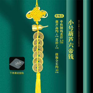 【黄縄モデル】小瓢箪太六帝コイン、無料朱沙フック