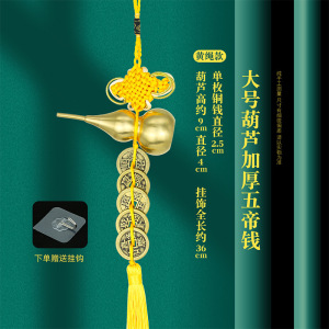 【黄縄モデル】大瓢箪太五帝コイン、無料朱沙フック