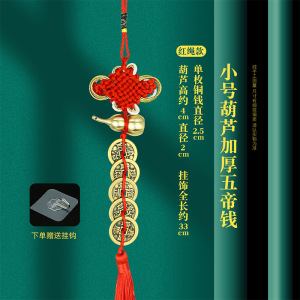 【黄縄モデル】小瓢箪太五帝コイン、無料朱沙フック