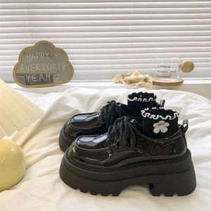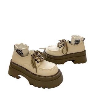 厚い底の小さい靴の女性の2025年の秋の新型の百合の復古の英倫風の丸い頭のひもの靴のスカート