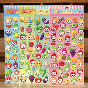 3D 漫画フルーツ立体子供用ステッカーアップルバナナパイナップルベビーパズル手作りご褒美装飾ステッカー