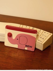 Rehi かわいい象漫画カードホルダー女性のパーソナライズされたニッチ大容量マルチカードスロットコンパクト小銭入れ抗消磁カード
