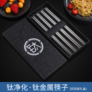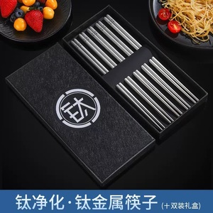 チタン箸家庭用ギフトボックス角箸滑り止め高温耐性チタンメッキステンレス鋼つや消しチタン食器セット新しい食器