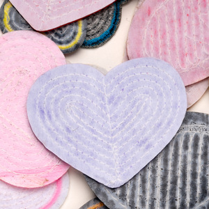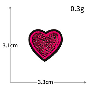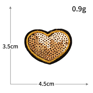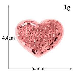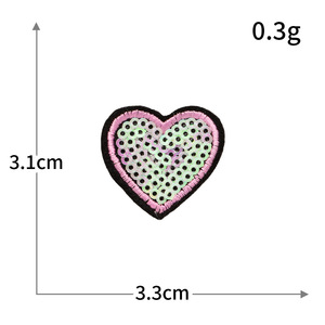 スパンコールピーチハート刺繍布ハート型コンピュータ刺繍ホットメルト接着剤アイロン接着衣類パッチ卸売