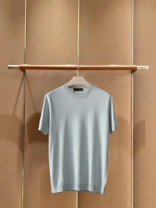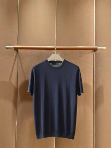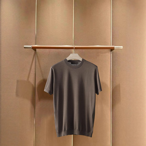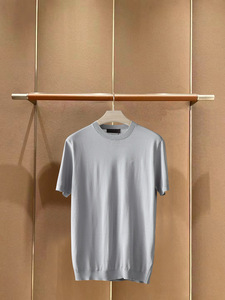 夏のオールドマネースタイルメンズ高級感カジュアル無地ラウンドネック快適コットン半袖薄手ニットlp軽熟系