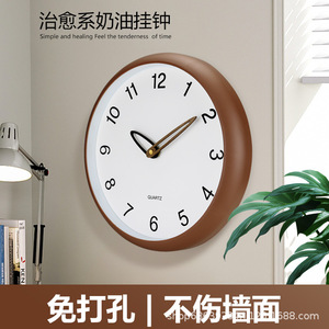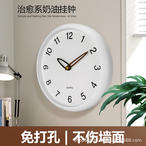 [12インチ 30CM] ソリッドカラーの壁掛け時計、軽くて豪華なリビングルーム、ファッショナブルでシンプルな壁掛け時計、家庭用クリームスタイルの時計