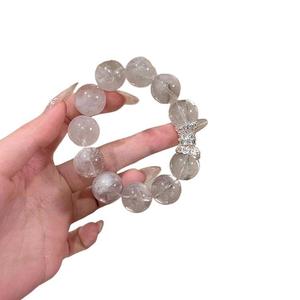安神稳定情绪2025春夏新款天然白幽灵水晶手串女灰紫兔毛串珠手链
