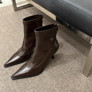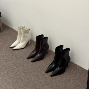 2024秋冬新作スリムブーツ~スティレットハイヒールポインテッドトゥ気質ソフトレザーバックジッパー韓国風万能ショートブーツ